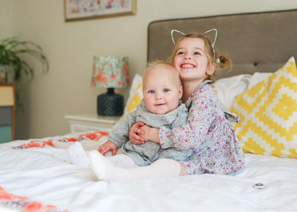 Oh these blue eyes, and that look! This was a fabulous baby shoot with two sisters at home in Haslemere. It’s everything I love about baby shoots at home. Shooting at home meant baby was very relaxed and comfortable and we were able to capture some of her gorgeous baby rolls and tiny toes without getting cold outside. This little baby was just 7 months when I photographed her. It was a great age to photograph as her little personality was starting to shine through and as she was just starting to sit up so there was lots of range of poses we were able.